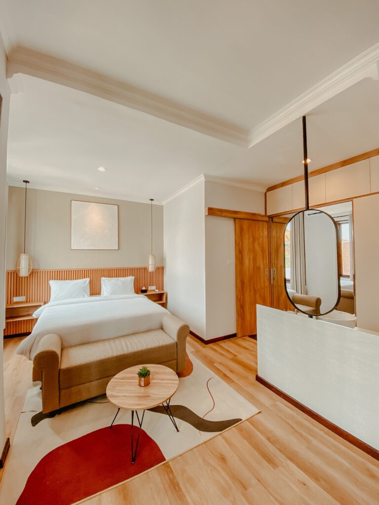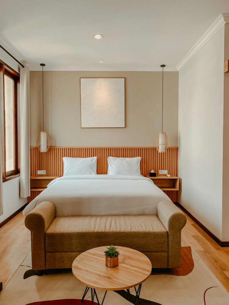Designed to be your perfect retreat for relaxation and leisure. This thoughtfully curated space features plush bedding, warm lighting, and a harmonious blend of modern comforts and natural.